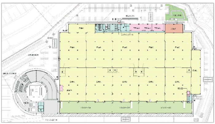 「川西 DC1」「川西 DC2」共に、倉庫の梁下有効⾼は1階が6.5m、2階ー6階が5.5m、床荷重は1階 2.0t/m2、2階―6階は1.5tm2、柱ピッチは11m×11mを確保。1フロアを最大3分割・最小区画約1000坪とするなど、物流効率化を促進し、輸送拠点やクロスドック型物流、保管型、自動倉庫等あらゆる事業者の多様なニーズに応えられる汎用性の高い設計とした。