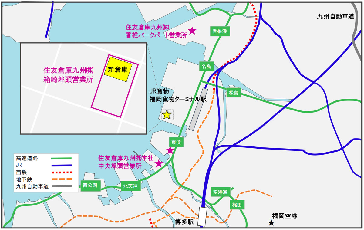 住友倉庫は10月3日、子会社の住友倉庫九州が、福岡市東区箱崎ふ頭にある箱崎埠頭営業所内に新倉庫を建設することを決定し、工事を開始したと発表した。