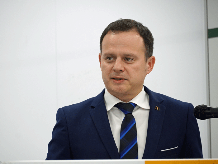 開会にあたり、サプライチェーン本部執行役員 ボッケル・ウォーリー本部長が登壇。「鳥インフルエンザや気候変動による野菜の価格向上、国際情勢による物流への影響、高齢化などサプライチェーンには様々な課題がある。顧客に安全・安心な食材を届けるため、『Never Break=絶対に途切れないサプライチェーン』を掲げ、サプライヤー、フランチャイザー、マクドナルドの3つが連携し、川上から川下までトータルに取り組んでいきたい」と挨拶した。