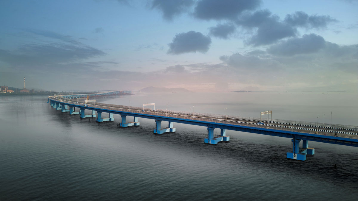 ムンバイ湾横断道路建設事業は,インド共和国マハラシュトラ州ムンバイ都市圏において,半島側のムンバイ市中心部Sewri(セウリ)から,ムンバイ湾を挟んだ東郊のナビムンバイ市を接続する,総延長約22kmのインド最長の海上道路。同事業のうちIIS-L&Tが担当した橋梁建設工事パッケージ1は,このうちのセウリを起点とした約10kmの海上道路橋の建設工事。IISは,同国で初めて採用される重防食塗装の鋼床版箱桁の製作・輸送などを行った。