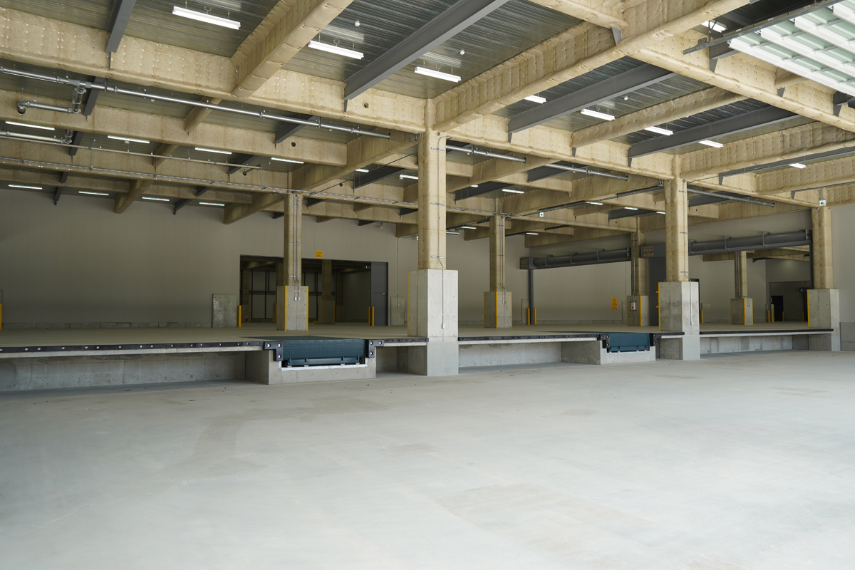 同物件は、地上3階建て延床面積2万2130m2のボックス型倉庫。最大2分割での利用が可能で、各区画ごとにカゴ車対応の垂直搬送機を計4基、荷物用エレベーターを計2基実装している。