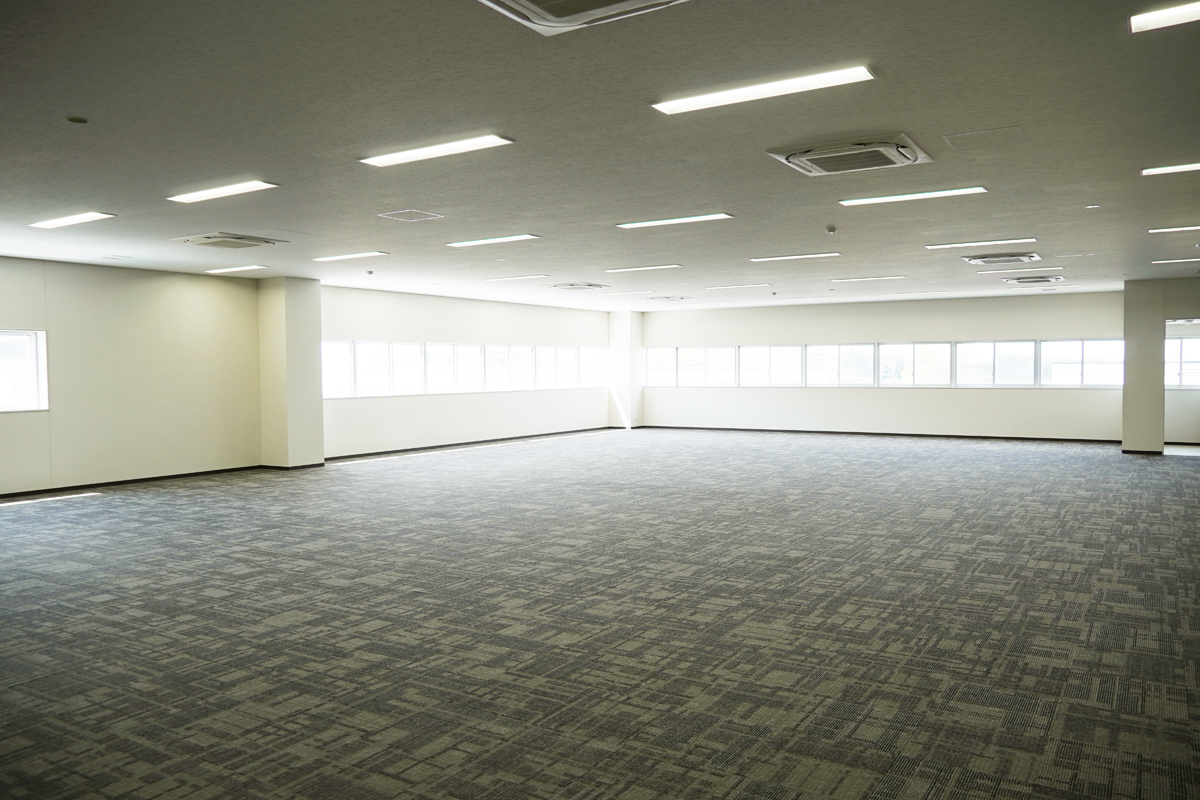 事務所は、区画ごとに1階と2階に各1か所(計4か所)設けられており、特に2階は350m2超の広々とした執務空間を整えている。