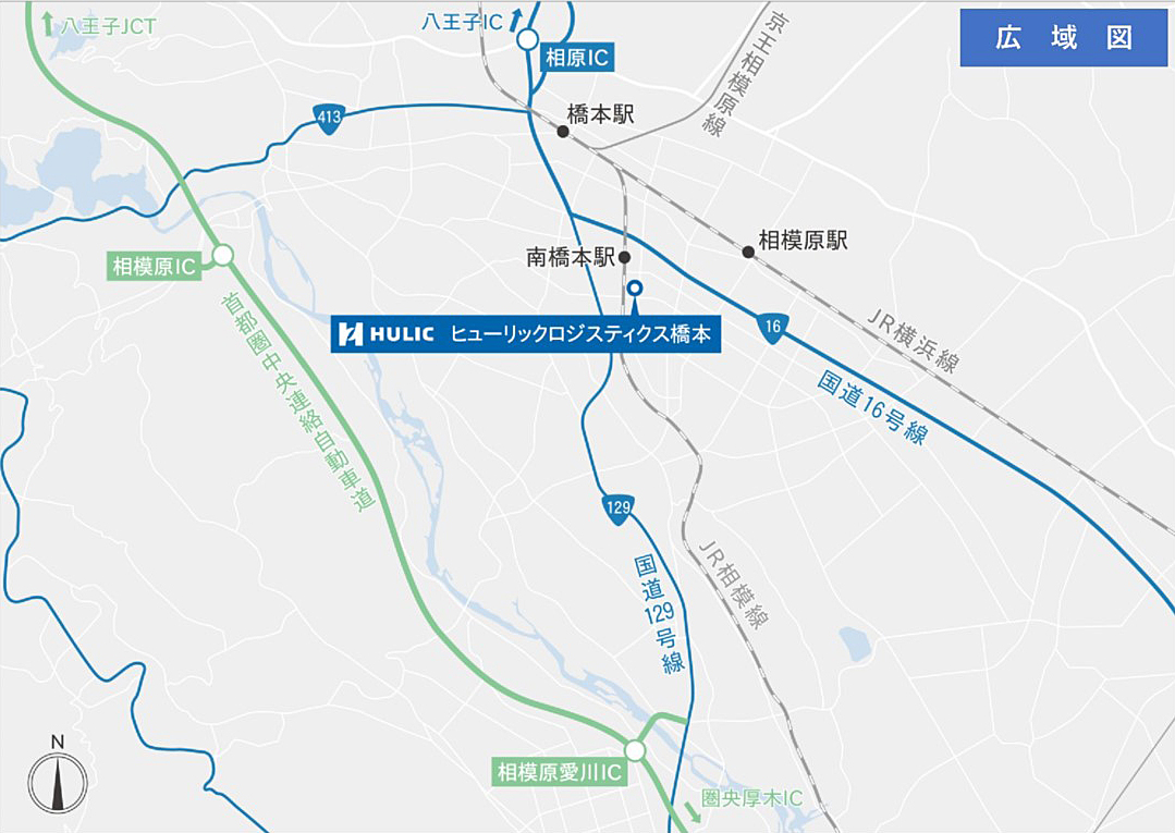 また、国道16号・129号に至近で、圏央道のICにもアクセスしやすく(相模原愛川ICから6.5km、相模原ICから7㎞)、幹線輸送に加え、東京西部・神奈川エリアへの広域アプローチが可能な環境に立地している。