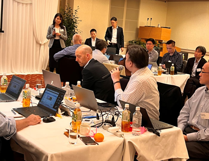 主要拠点11か国・地域から21人のIT、DX専門家集団が来日し、川崎汽船のCIO(チーフインフォメーションオフィサー)やデジタライゼーション戦略グループ、ケイラインビジネスシステムズ社の関係者ら総勢42人で議論した。