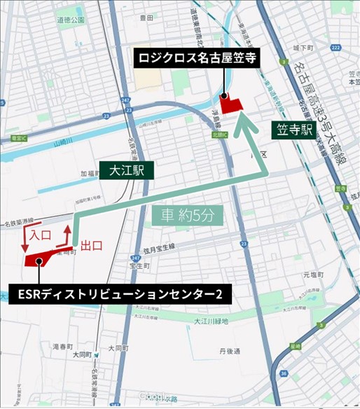 ※「ESR名古屋南ディストリビューションセンター2」の内覧後、「ロジクロス名古屋笠寺」(愛知県名古屋市南区東又兵ヱ町1-57-2)へ各自で移動(車約5分)。車でない場合は現地担当者まで連絡。