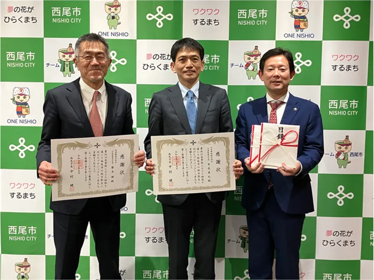 贈呈式では中村健市長が「佐久島での長年にわたる藻場再生活動が、今年度初めてブルーカーボンクレジットの認証取得という一つの成果にまで結びついたことは大変誇りに思う。今回の寄付金も今後の活動に有効活用させて頂く」と感謝の意を表した。