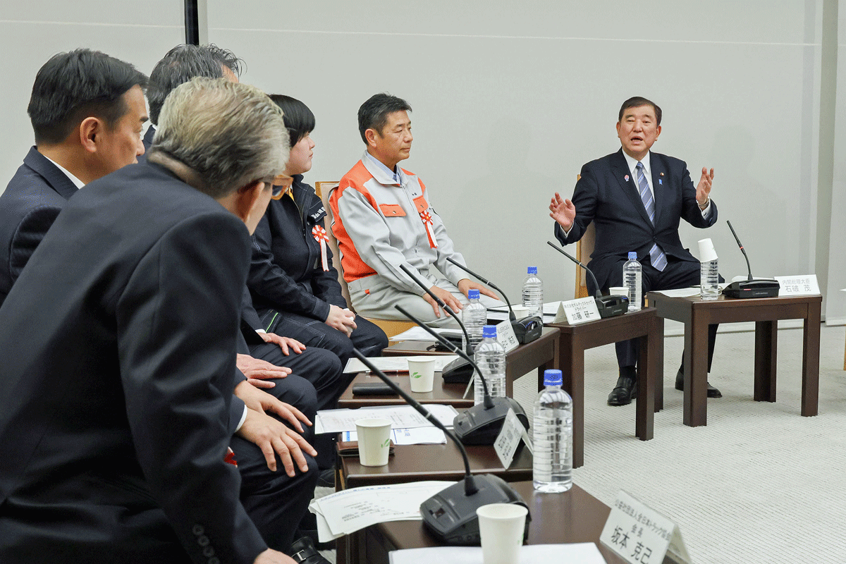 石破茂総理は3月14日、首相官邸において「トラックドライバー等との車座」を開催。政府が施策として進めている価格転嫁や賃上げの現状や、荷主に対しての改善点などについて、ドライバーやトラック事業者と意見交流を行った。