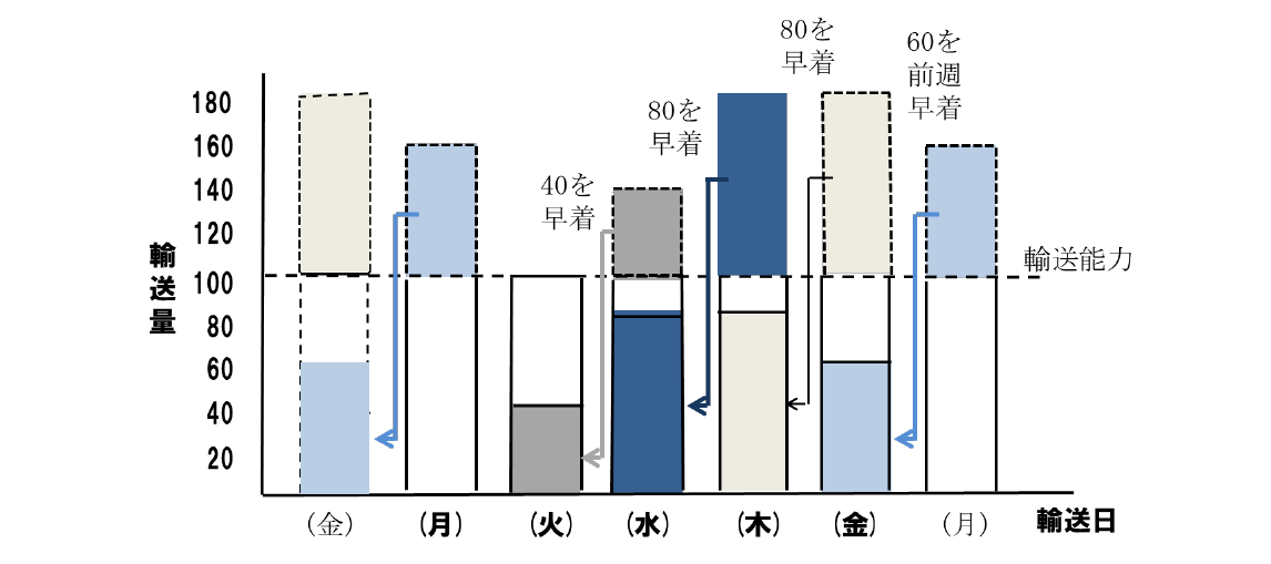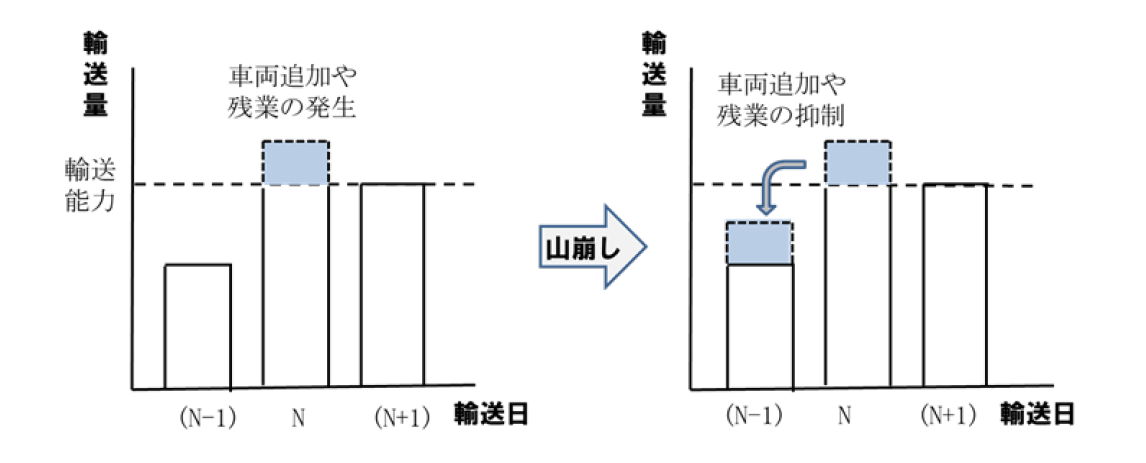 輸送量の平準化のための「山崩し(早着)」の考え方(図1を参照)