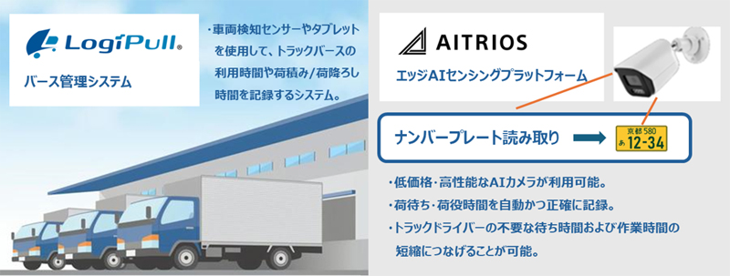 シーイーシーのバース管理システム「LogiPull(ロジプル)」と、SSSが提供するエッジAIセンシングプラットフォーム「AITRIOS(アイトリオス)」を連携させる。