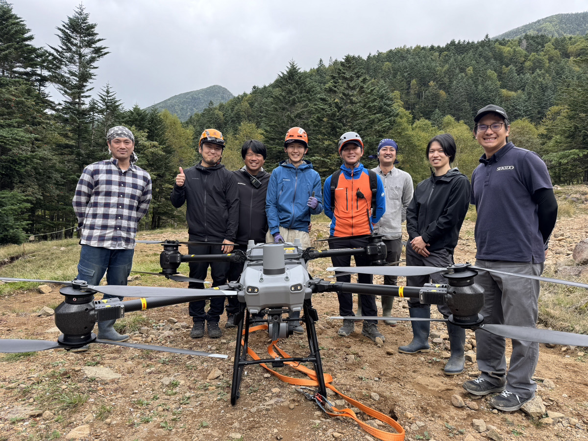 9月23には、赤岳鉱泉からさらに山奥にある行者小屋までの登山道で、壊れてしまった箇所を直すための資材をドローンで運んだ。