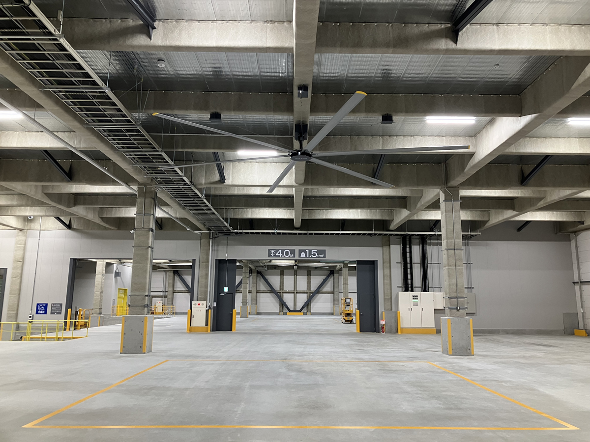 「DPL福島二本松」は、同社としては福島県で5棟目となる物件。地上3階建てで延べ床面積は1万3096.05m2となる。シーリングファンを設置し、庫内の空気を循環させるとともに、夏場の暑さを低減させるなど、従業員の働きやすい環境を整備している点が特徴だ。