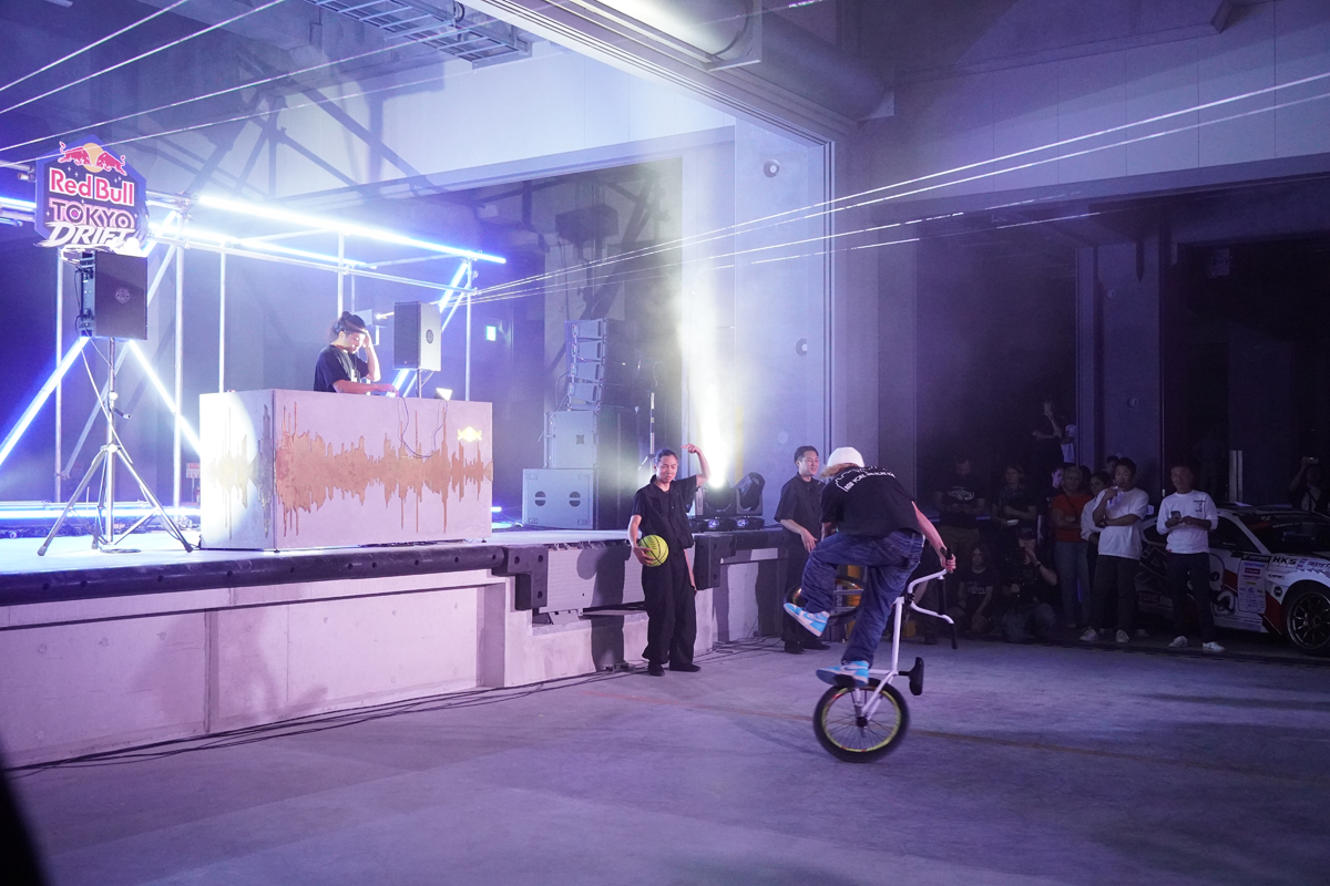 また、イベント中盤からはドリフト走行を実施。新進気鋭の若手ドライバー 箕輪大也氏と、ドリフト界を代表するプロドライバー マイケル・ウィデット氏の「レッドブル・アスリート」に所属する2名が、ランプウェイをドリフト走行で駆け上がるパフォーマンスを披露した。