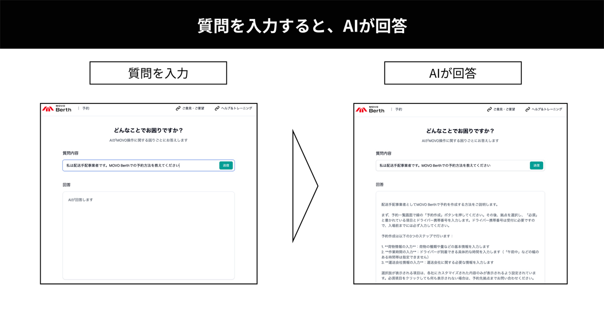 Hacobuは10月6日、トラック予約受付サービス「MOVO Berth(ムーボ・バース)」で、ヘルプページにAI検索機能を追加したと発表した。