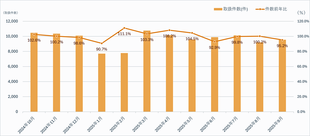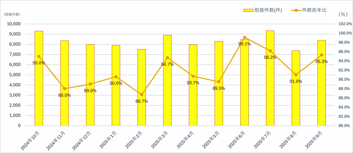 阪急阪神エクスプレスが10月8日に発表した2025年9月の航空輸出入取扱実績によると、航空輸出の取扱件数は9550件(前年同月比4.8%減)、取扱重量は2978トン(1.4%増)となった。