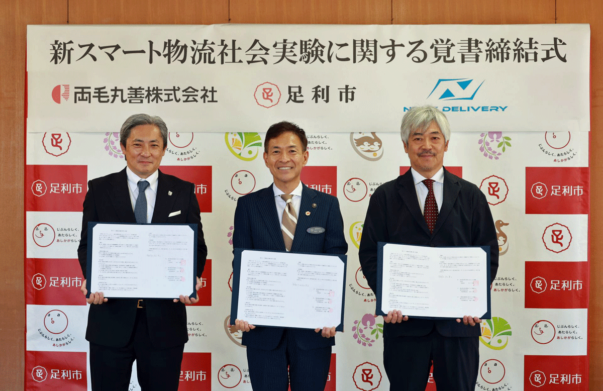 覚書は地域課題解決を目的に、足利市内における新スマート物流の社会実験を共同で推進することを確認したもの。