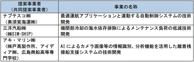 国土交通省は10月14日、DX・GXや船員の高齢化といった諸課題に対応するとともに、物流革新等に貢献するための技術開発・実証であり、内航事業者が造船・舶用事業者と連携して取り組む事業について、補助事業として新たに3件採択したと発表した。