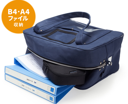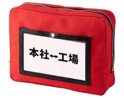 透明ポケットに送り先や送り元を表示したものを入れて、社内便用バッグとして使う方法もある。標準価格はバッグ「BAG-MAIL3NV」が税込1万6500円、ポーチ「BAG-MAIL4R」が税込み1万2100円。