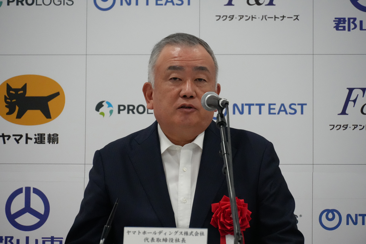タウンB棟に「郡山ロジセンター」を開設するヤマト運輸の持ち株会社であるヤマトホールディングスの長尾裕 社長は、来年50年を迎える宅急便はサービス開始当初から郡山に拠点を構え、現在もターミナルと営業所8か所、約750人のスタッフで、郡山市内の宅急便サービスを展開していることを説明した上で、宅急便の福島ベースや福島・郡山主管支店が1年後にLLタウン内に移転することで、地域の防災と宅急便の全国ネットワーク機能がつながるとの考えを示した。