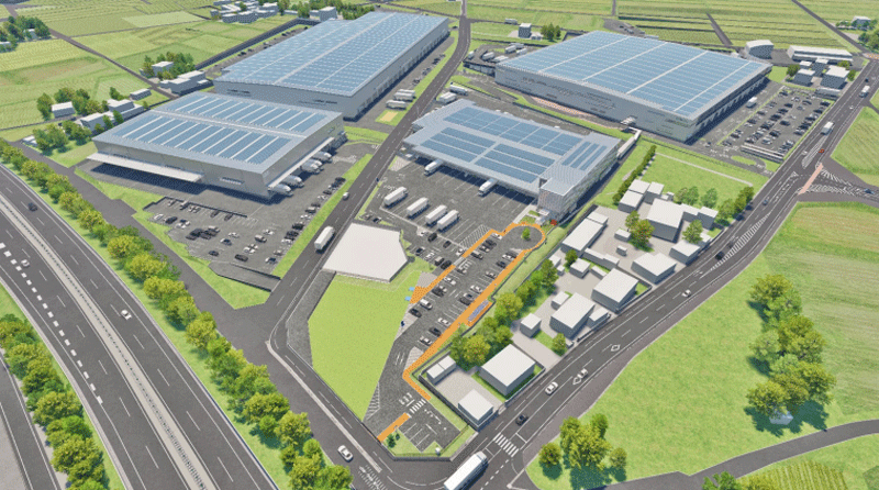 開発は、平常時に⼈の暮らしを⽀える「物流施設」と災害時に⼈の命を守る「防災機能」を併設する、環境配慮型の物流施設を核とした街づくりだ。