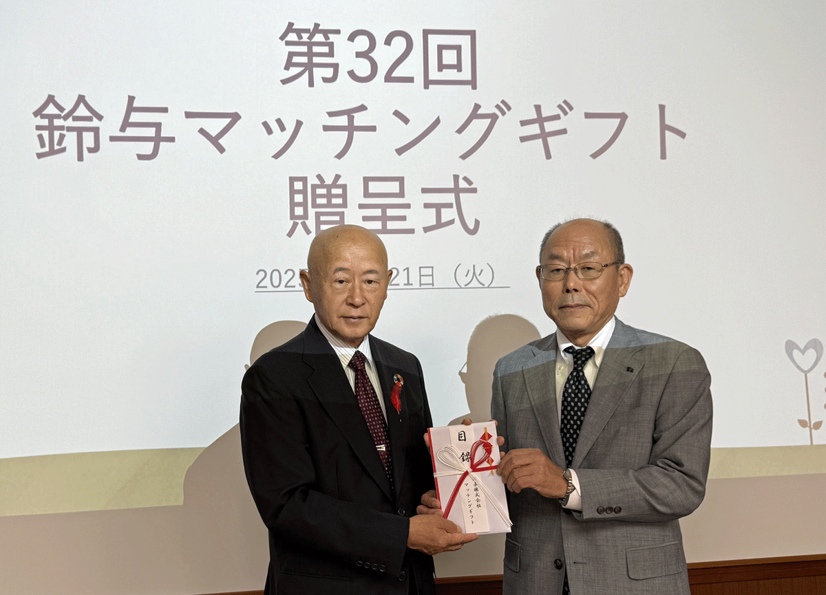 同社有志社員が給与天引で毎月100円ずつ積み立てた募金に、会社が社員1年間の積立額と同額を上乗せし、静岡市社会福祉協議会を通じて静岡市内の福祉施設・ボランティア団体・地区社協等に寄付する活動「マッチングギフト」として実施したもの。