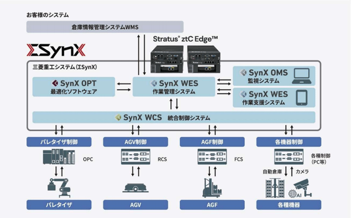 これは、さまざまな機械を同調・協調する標準プラットフォームである「ΣSynX(シグマシンクス)」上に実装されている。そして、そのコントローラーとしてペンギンソリューションズの「止まらない」エッジコンピューティング「Stratus ztC Edge」が標準プラットフォームとして採用された。「Stratus ztC Edge」は産業用途に設計された、ゼロタッチ運用が可能な無停止サーバーで、これにより、専用のサーバー室が設置できないような倉庫という環境でも無停止の運用が実現できる。