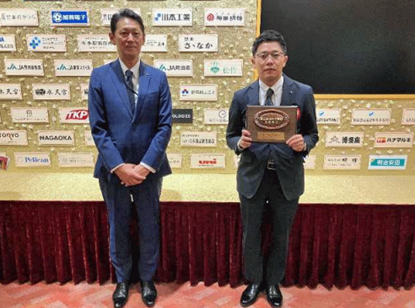 <10月16日の表彰式で 左が鈴与カーゴサービス北関東の石井 斉社長、右が鈴与 第三DC 事業部 益岡 佑輔 部長>
