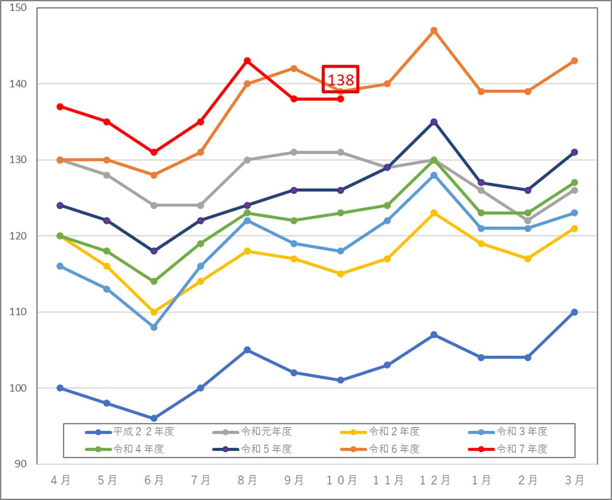 全日本トラック協会と日本貨物運送協同組合連合会は11月1日、求荷求車情報ネットワーク(WebKIT)の2025年10月成約運賃指数を138(前年同月比1ポイント減)と発表した。