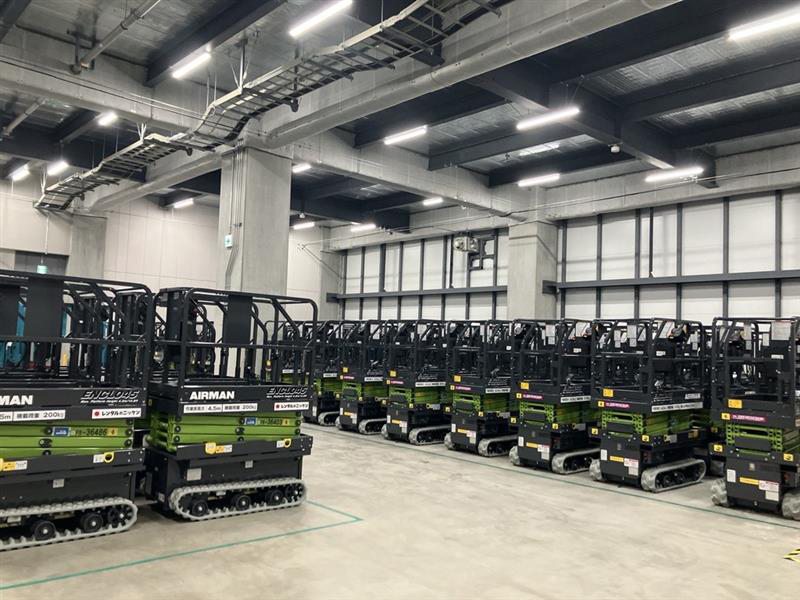 厚木物流センターでは、主力工種の建設関連分野における高所作業車やミニマシーン商品の再生・供給体制を強化し、物流効率の向上と保管スペースの確保を実現する。