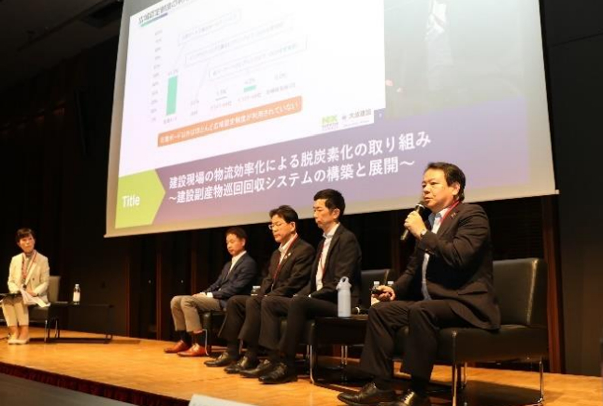 パネルディスカッションでは、商船三井の引間 透 執行役員チーフ・サステナビリティ・オフィサー、成田国際空港の田代 敏雄 執行役員サステナビリティ推進室長、タイガー魔法瓶の南村 紀史 商品企画第2チームマネージャー、大成建設サステナビリティ経営推進本部カーボンニュートラル推進部の竹尾 健一 環境技術室長が登壇し、海運・航空・製造・建設各分野の先進事例をもとに、持続可能な物流実現に向けた実装手段、サプライチェーン連携、データ活用、燃料・輸送モード転換の可能性を検討した。