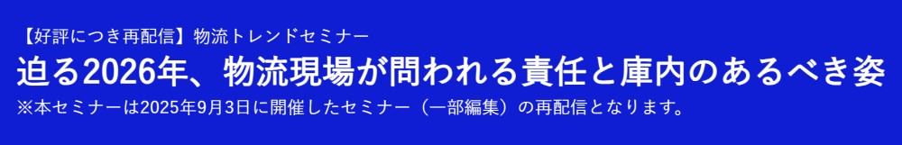 同セミナーは、2026年の法改正・人手不足など、常に変化し続ける物流業界において、荷主企業に求められる責任と現場改善の方法を2部構成で紹介。