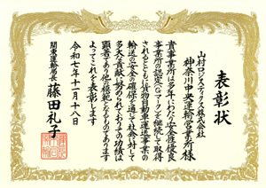 山村ロジスティクスの神奈川中央運輸営業所は11月18日、令和7年度の安全性優良事業所関東運輸局長表彰を受賞した。