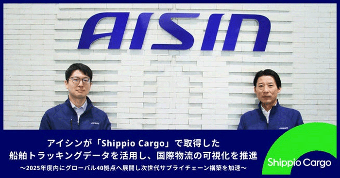 アイシンは2023年より荷主向け貿易管理クラウド「Shippio Cargo」を活用し、貨物輸送状況の可視化及び輸送データの活用を進めてきた。さらに2025年度中にはアイシンのグローバル約40拠点へこの取り組みを展開し、「2030年物流コスト半減」という目標の実現に向け、次世代のサプライチェーン構築を目指す。
