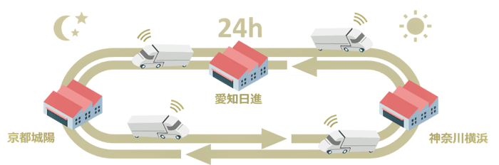 <中京圏・関東圏・関西圏の基幹物流施設を結ぶ「基幹物流型ラウンド輸送」イメージ>