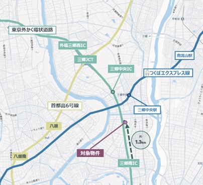 交通:東京外環自動車道「三郷南IC」1.3km、つくばエクスプレス「三郷中央駅」徒歩19分