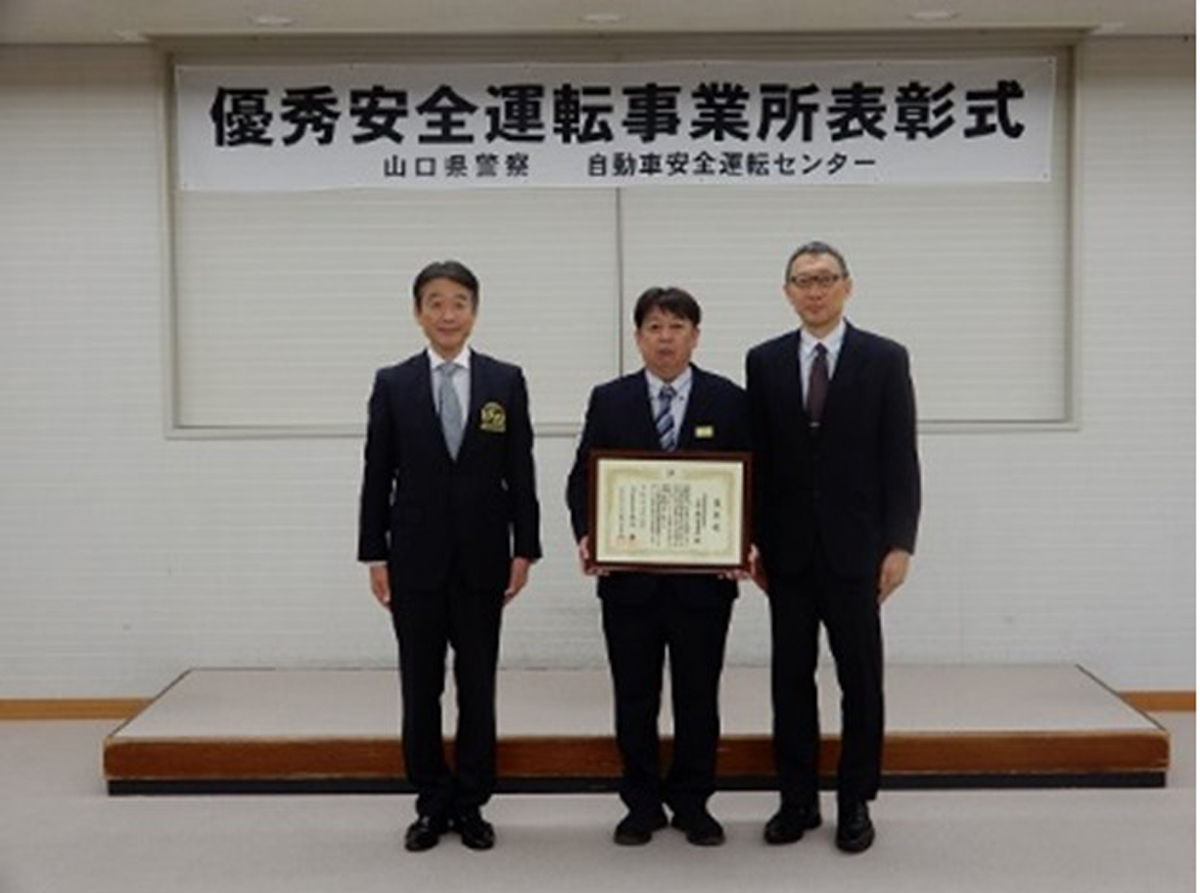優秀安全運転事業所表彰は、自動車安全運転センターが、事業所ぐるみで運転記録証明書を活用し、安全運転、交通事故防止に努め、素晴らしい無事故・無違反を挙げた事業所をその度合いに応じて銅賞、銀賞、金賞、プラチナ賞の4ランクで表彰するもの。