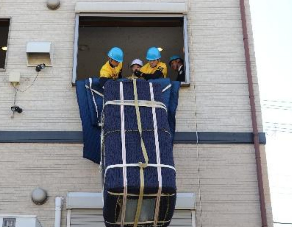 競技では、客役のスタッフを配置し、家財を安全に素早く運ぶ技術だけでなく、気配りができているか、言葉遣いが適切かといった点も審査。