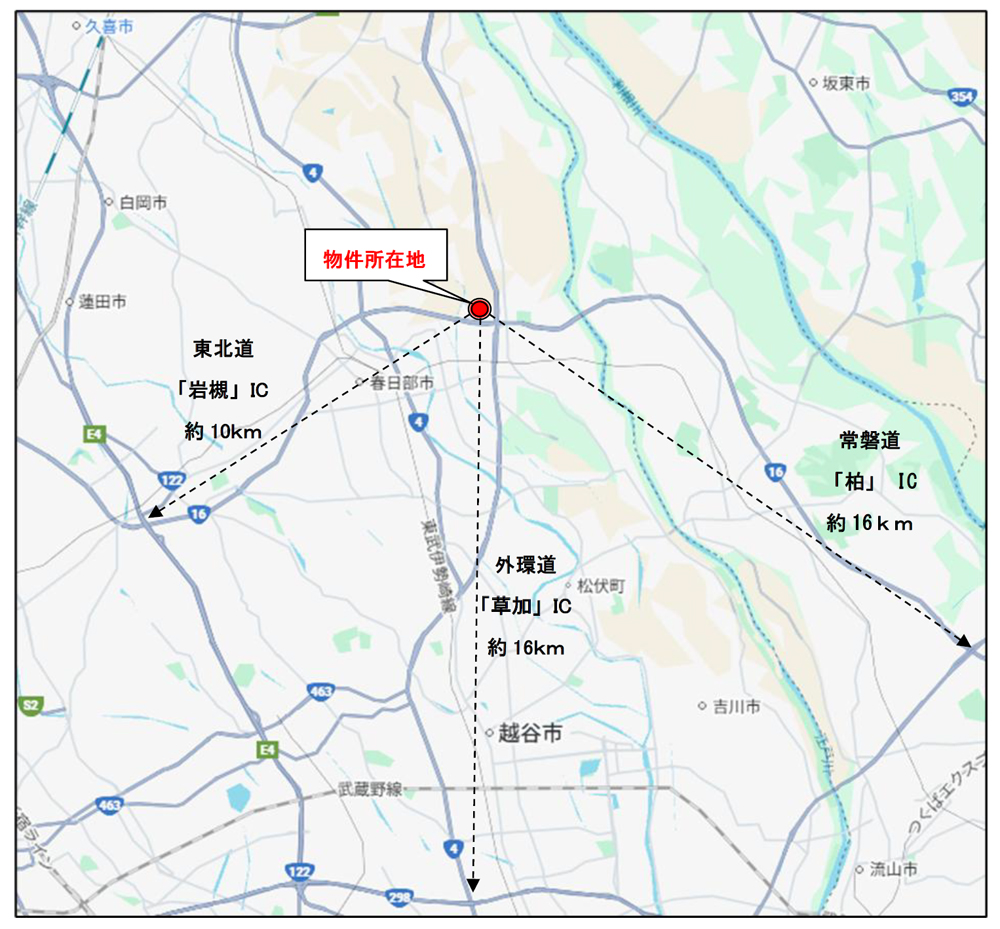 開発用地は、敷地面積4307m2。国道16号と新4号国道を軸に、東北道、外環道、常磐道を通じて首都圏内外をカバーし、冷凍冷蔵食品の保管・配送拠点として、交通・配送利便性に優れる。