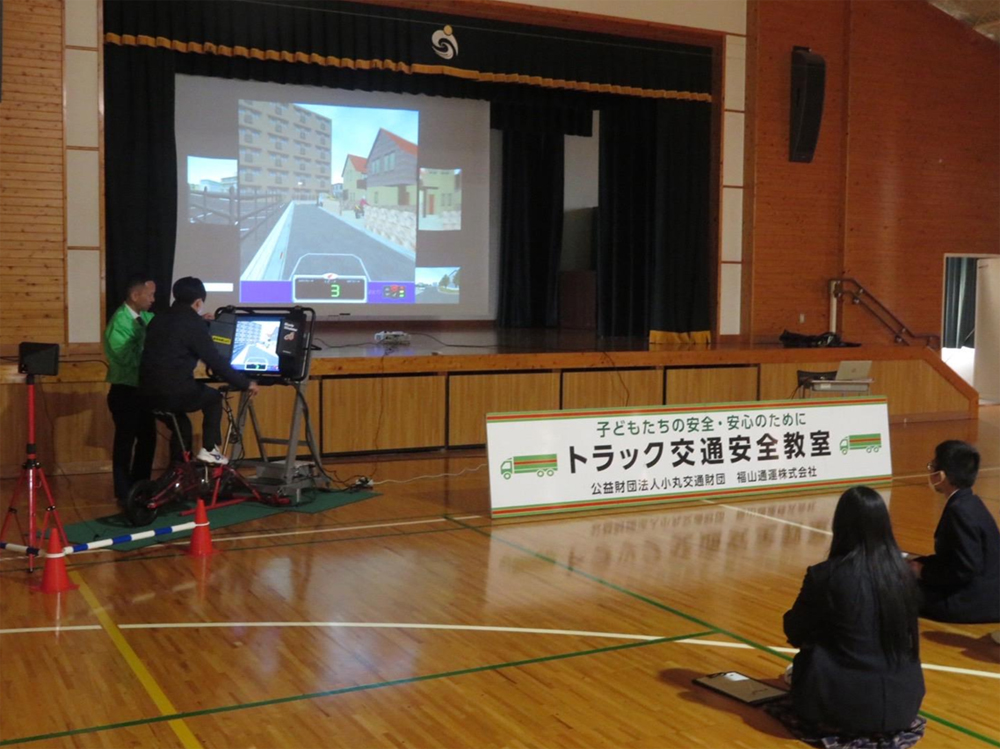 福山通運と小丸交通財団は12月1日、岡山県立岡山瀬戸高等支援学校の3年生34人を対象に、交通安全教室を開催した。