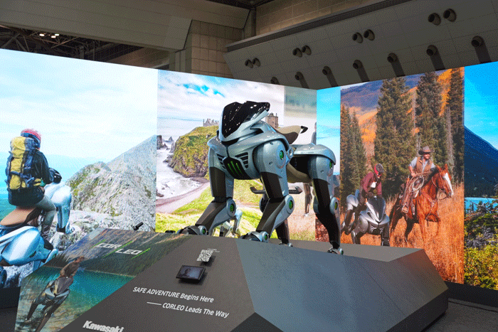 また大阪・万博で披露された4足歩行ロボット「CORLEO(コルレオ)も展示。工場など産業利用だけでなく人が乗ることも想定しており、会場では多くの人が立ち止まり、写真を撮るなど異彩を放っていた。