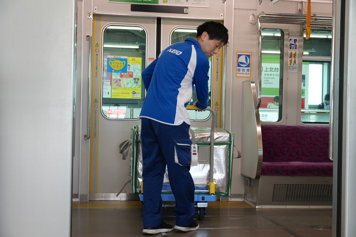 取材会で京王運輸の窪田 洋 社長は、「事前に旅客の少ない時間帯の列車を選び、商品の入っていない状態でモノレール車両内での台車を置くスペースなどを確認した。12月2日のプレ運用開始から4日目を迎えるが、これまでのところトラブルなく進んでいる」と、順調な滑り出しを見せていることを報告した。