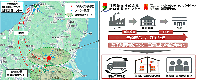 また併設物流センター内の庫内運営を新潟輸送に集約することで両社の物流センターに必要な庫内作業者・施設設備の共有化を図り、イニシャルコスト、ランニングコストを圧縮する狙いもある。