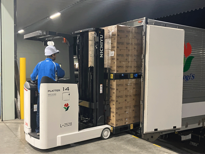 なお庫内には小分け出荷システムを導入しバラ商品のピッキングの生産性を向上させるとともに、パレット物流を推進。今後、両社はバラ積み・バラ降ろしが多い菓子物流におけるメーカーと卸間の物流垂直統合を実現し、さらなる効率化と物流拡大へ取り組みを強化していく方針だ。