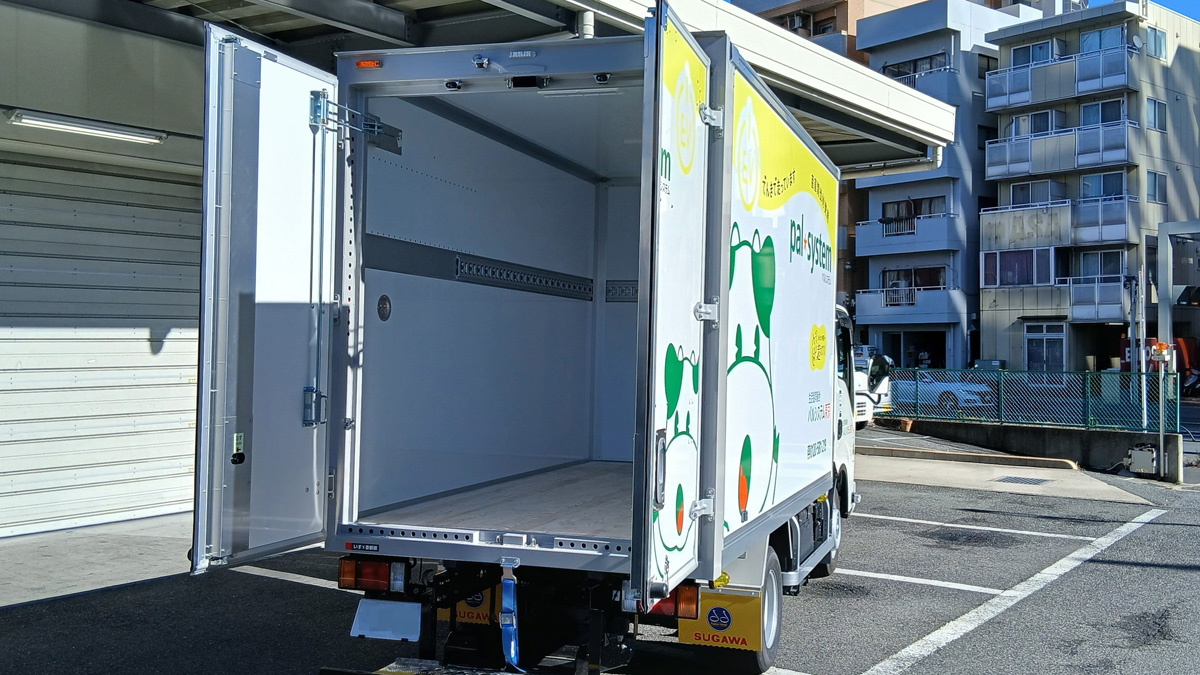 パルシステム東京は12月26日、東京都江東区の配送拠点「江東センター」に、山梨県都留市の南都留森林組合の間伐材を荷台の床材に使用したEVトラックを導入した。