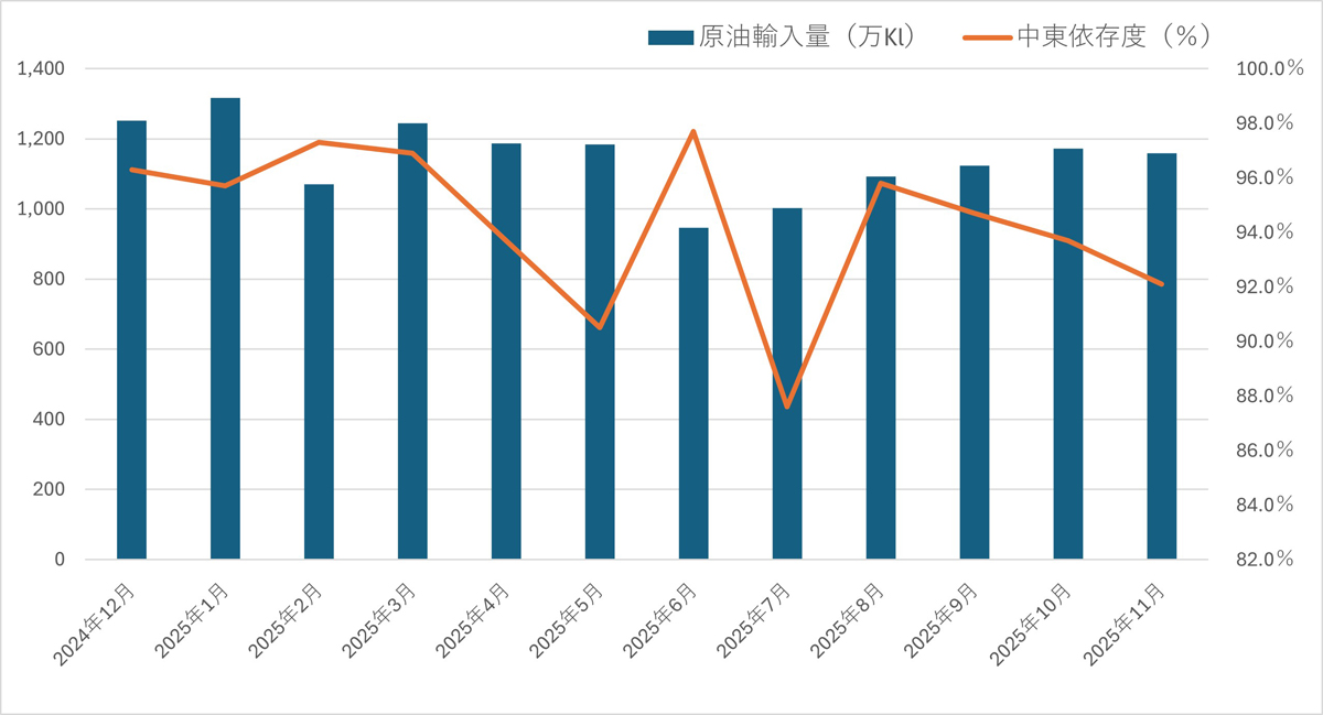 中東依存度は92.1%で、前年同月に比べ3.0ポイント減と2か月連続で前年を下回った。