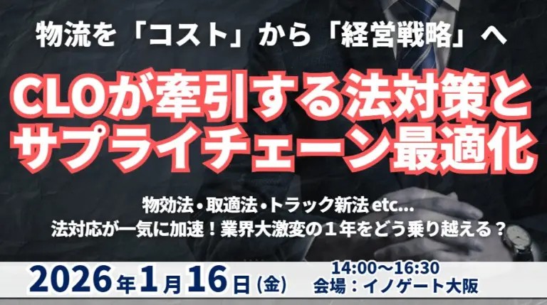 船井総研サプライチェーンコンサルティングは1月16日、「CLOが牽引する法対応とサプライチェーン最適化セミナー」を開催する。