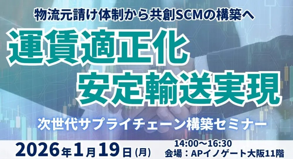 船井総研サプライチェーンコンサルティングは1月19日、「運賃適正化と安定輸送実現による次世代サプライチェーン構築」をテーマにセミナーを開催する。