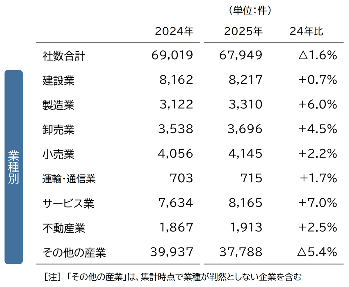 休廃業、解散/2025年は過去最多ペース、物流は運輸業で増加