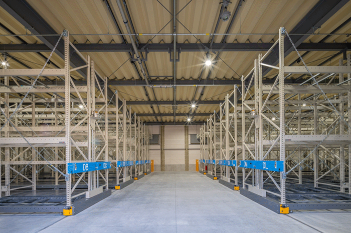 新物流拠点では事務所棟や倉庫棟、集荷場所、梱包室など計7つの建物を新設。このうち倉庫棟では危険物倉庫と一般物倉庫を各2棟新設し、各1棟に高層自動ラック倉庫を導入した。
