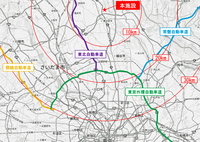 開発地は圏央道「幸手IC」・東北自動車道「岩槻IC」から約11kmに位置し、首都圏全域への配送に適した好立地。近年のEC市場の拡大や冷凍食品需要の高まりに対応するため、施設にはさまざまな機能を備える計画だ。