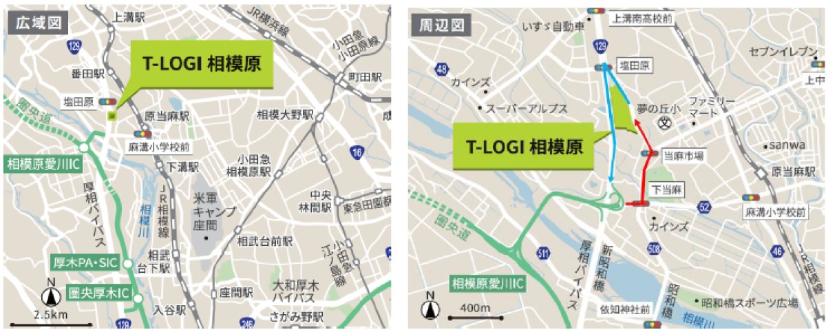 同施設は、神奈川県の主要幹線道路の1つである国道129号(厚相バイパス)に隣接、神奈川県内陸工業団地の玄関口でもある圏央道「相模原愛川IC」 約2.0kmと、神奈川県内の工場・物流集積地に至近で高速道路へのアクセスにも優位なことから、首都圏をはじめとした広域配送の適地となっている。